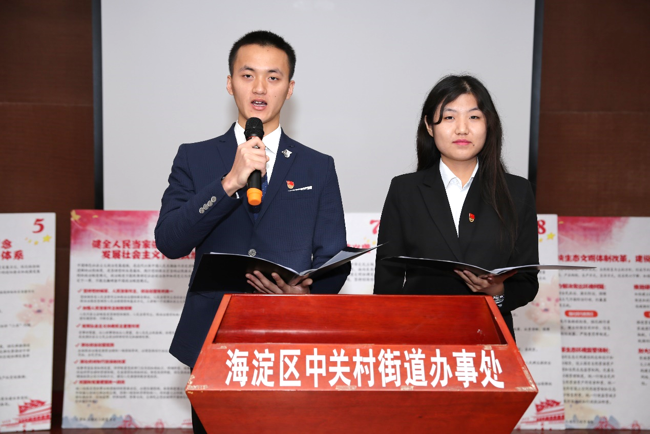 与此同时,来自学院求是协会十九大精神宣讲团的两名同学,围绕信息强国以及互联网发展两大主题,给前来参观的社区居民来了一场精彩的演讲。向大家全面的阐述了十九大以来国家政策下互联网及物联网的发展热潮,传递了建设“以人民为中心”的网络强国的思想。