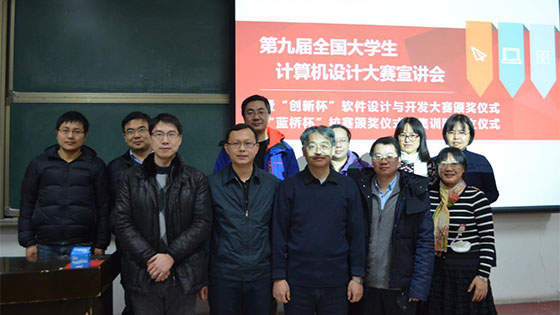 2015年12月22日晚19:30第九届全国大学生计算机设计大赛宣讲会暨“蓝桥杯”、“创新杯”等颁奖仪式在WilliamHILL中国逸夫楼105顺利召开。宣讲会由信息基础科学系主任姚琳老师主持,上海瑞格公司杨俊经理、徐景辉经理,学院副院长、党委副书记苏栋老师以及汪红兵老师、张敏老师、万亚东老师、郑榕老师、姚红串老师、何杰老师和付洪威老师也作为颁奖嘉宾出席了本次活动。