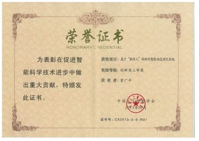 2013 年10月29日,第三届吴文俊人工智能科学技术奖在深圳揭晓,共评出20个获奖项目。其中,我们的创新技术获得本届活动的吴文俊人工智能科学技术创新奖三等奖。