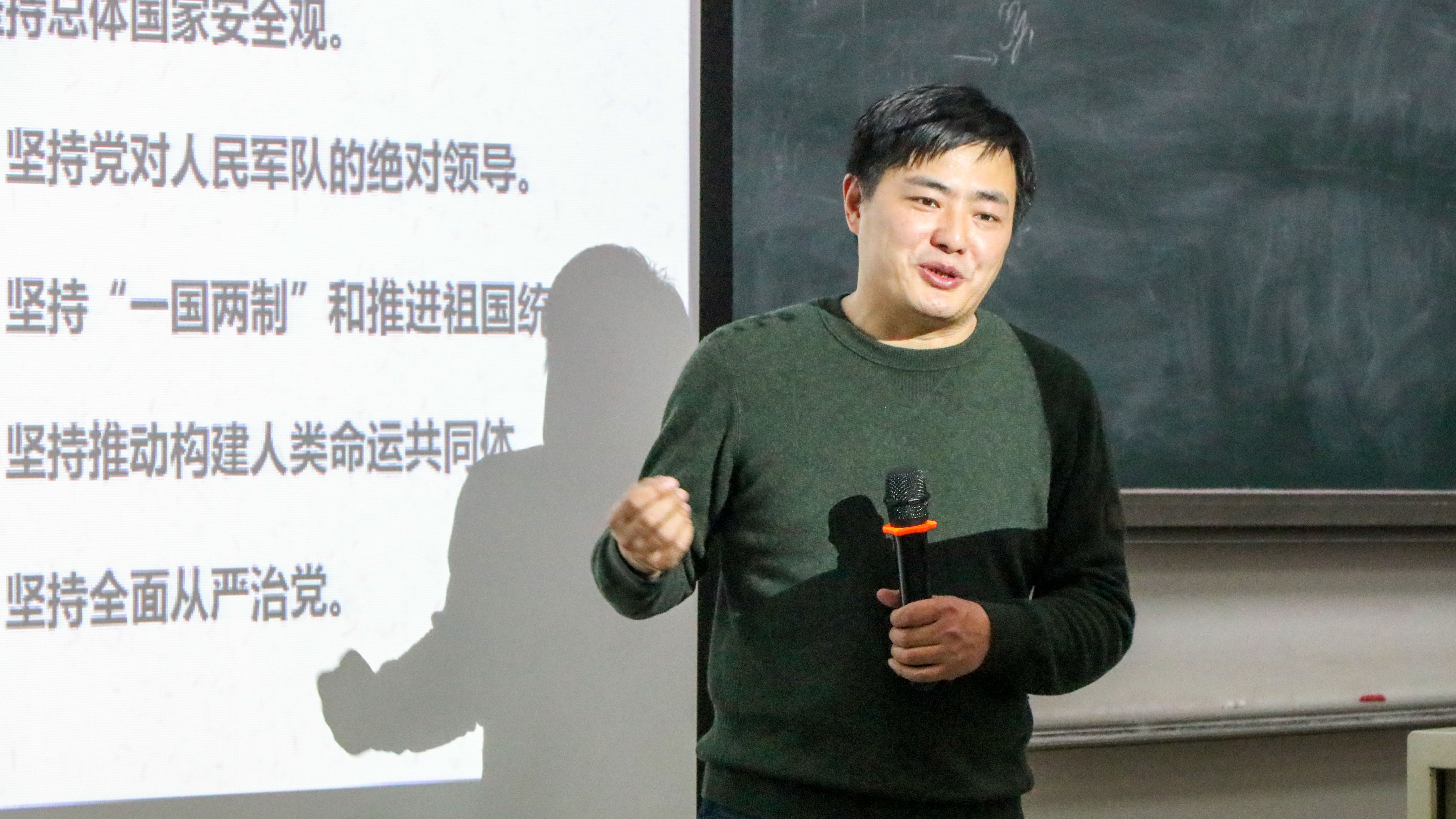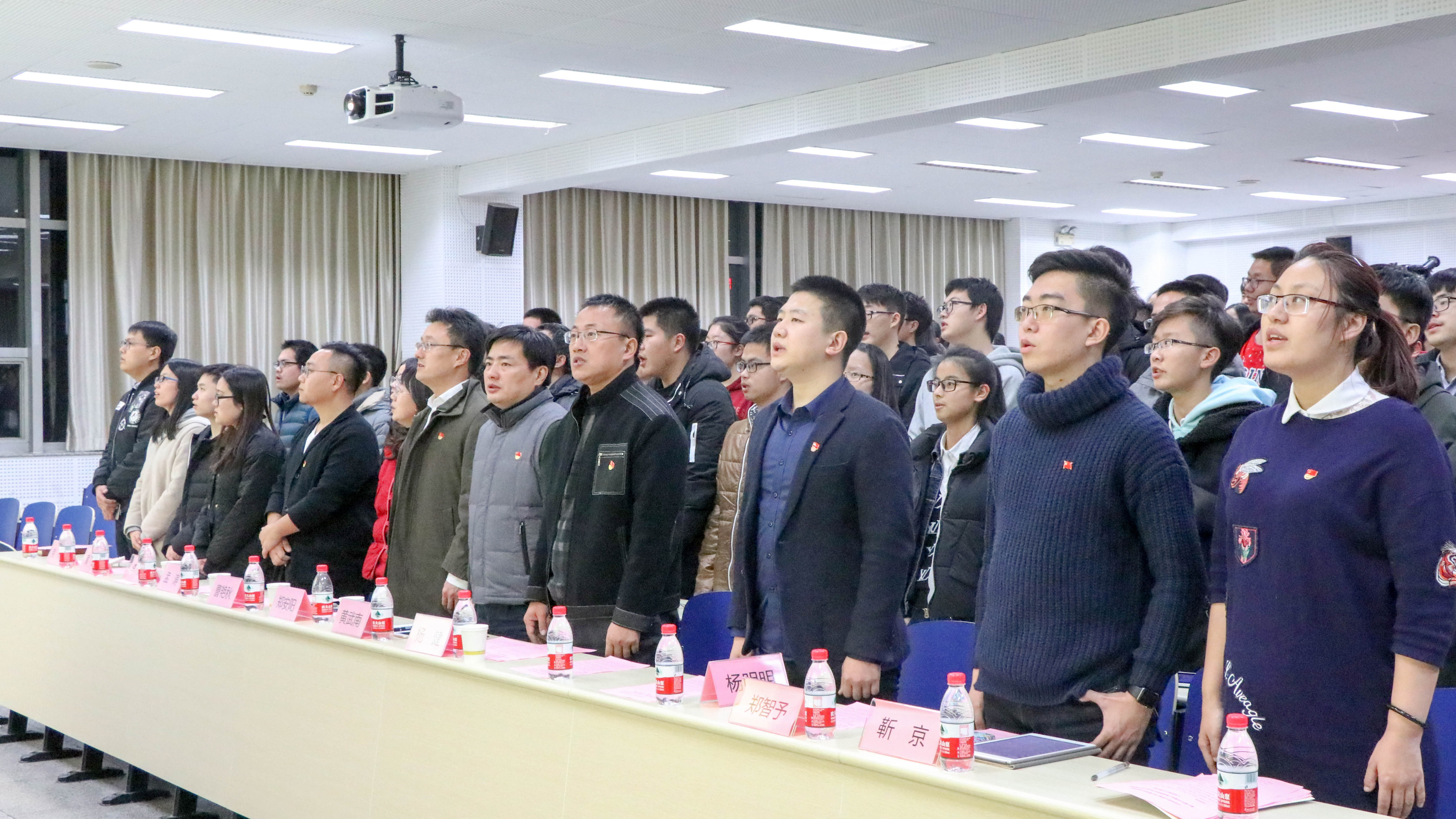 仪式结束后,黄武南为学员带来了以《学习十九大精神,以实际行动入党》为主题的理论报告。报告提纲挈领地从“新时代、新使命、新思想、新征程”四个方面,以生动的事例引入,为学员们诠释了党的十九大精神。黄老师在报告中指出,作为入党积极分子,首先要认真学习理论,坚定理想信念,提高思想认识,真正做到从思想上入党。同时,他指出,学生的天职是学习,科学文化知识是成才报国的物质基础,良好的学业成绩是学生党员先进性在本职岗位上的体现,并鼓励大家以优秀学长学姐为榜样,树立远大目标,刻苦钻研学习,为实现科技报国的梦想奠定坚实基础。