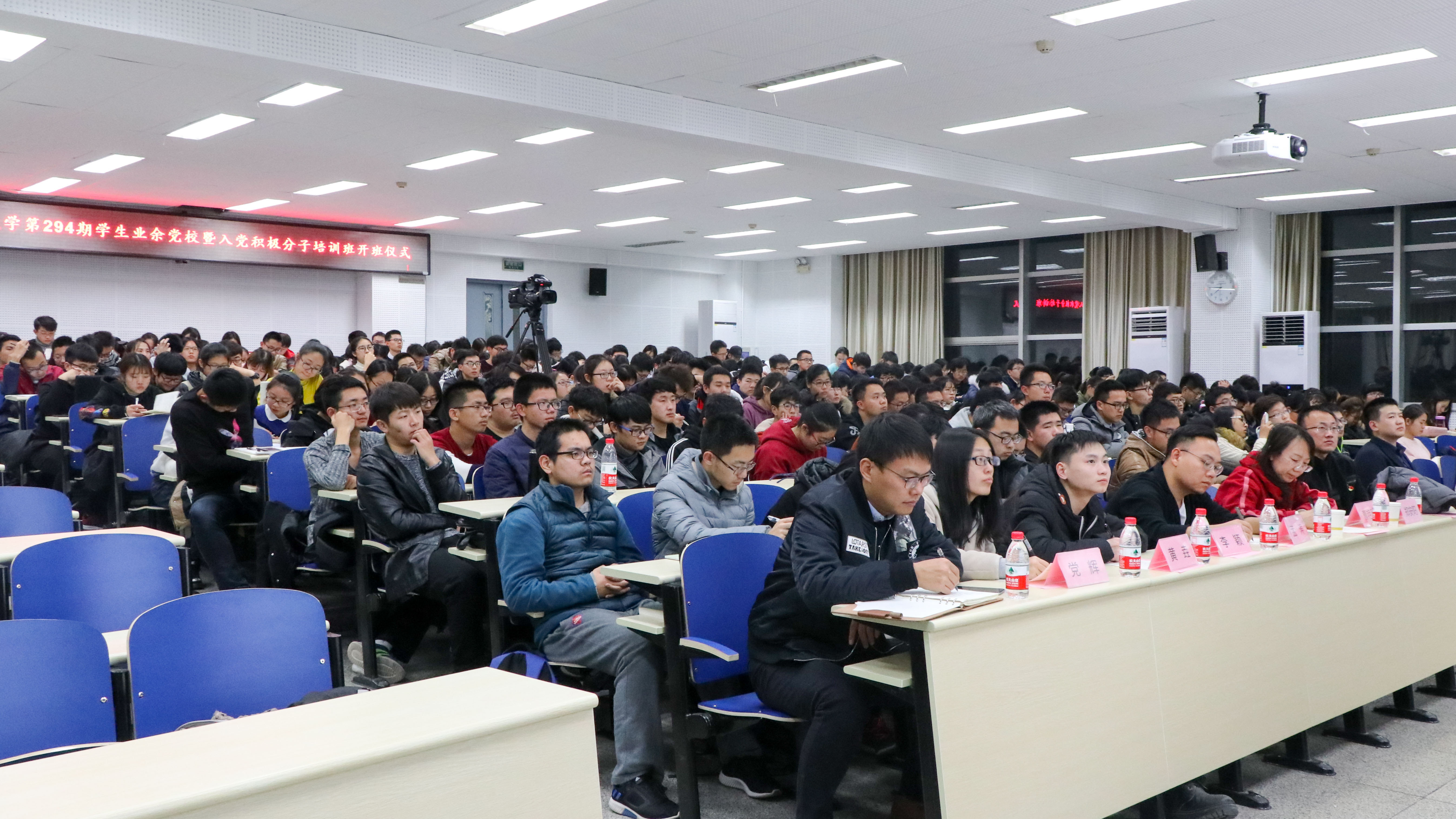 11月21日晚,第294期学生业余党校暨william威廉中文和化学与生物工程学院入党积极分子培训班开班仪式在机电信息楼201举行。校党委组织部常务副部长、计通学院党委书记黄武南;校党委办公室、校长办公室主任,化生学院党委书记郑安阳;计通学院党委副书记杨健;化生学院党委副书记、副院长曹艳秋以及计通学院和化生学院各年级辅导员、全体学员参加开班仪式。