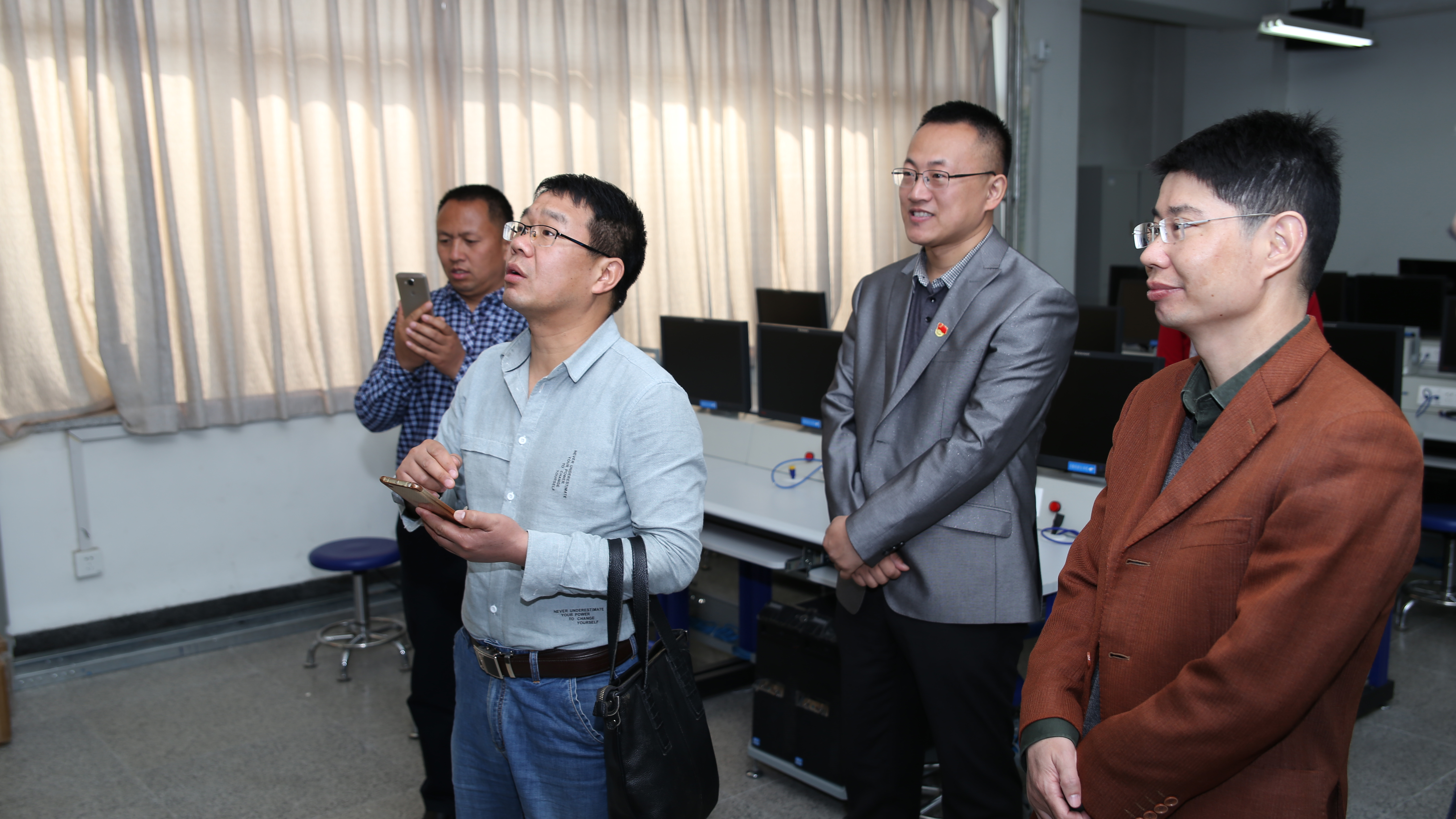 来访人员一行先后参观了我院的公共实验室、专业实验室、创新创业中心及训练基地。