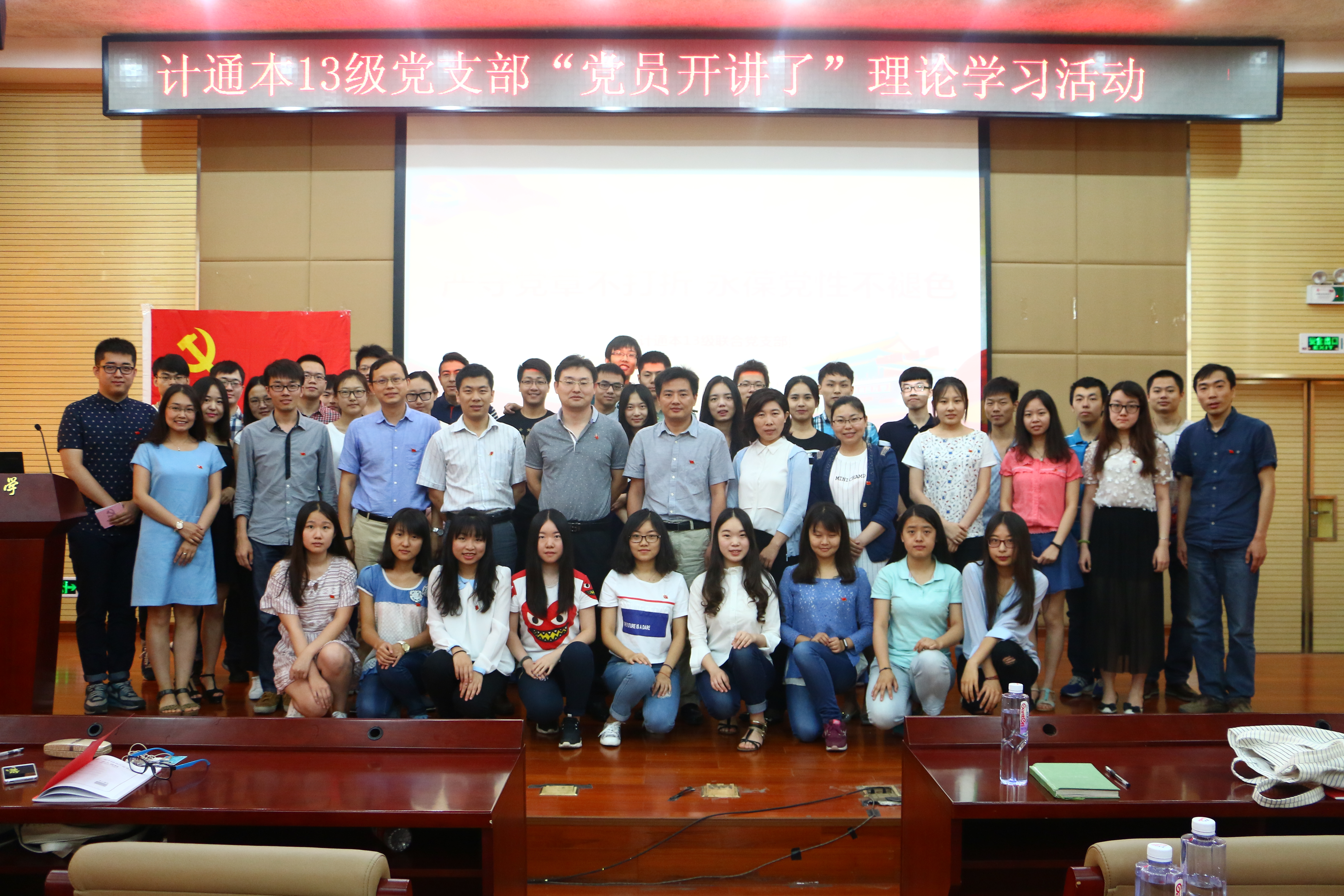 6月8日上午,计通学院本13级党支部举行了“党员开讲了”理论学习活动。我校学生处处长于成文、党校办副主任、学校两学一做办公室副主任郭志恒、党委宣传部副部长、学校两学一做办公室副主任李洁、学生处副处长、学校两学一做办公室副主任史立伟,以及计通学院党委书记黄武南、副书记苏栋、副院长、本科13级第二党支部理论学习导师王建萍参加本次活动。计通学院党员教工、学生党支部书记到场观摩。