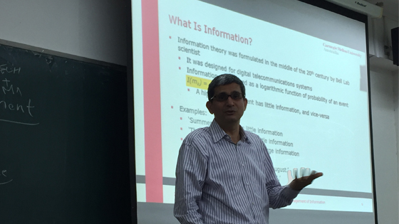 2015年9月22日晚上,应我院邀请,卡内基梅隆大学澳洲分校(Carnegie Mellon University-Australia)Riaz Esmailzadeh教授在信息机电楼821作了题为“Advanced Telecommunications Technologies and Management/先进通信技术与管理”的学术讲座,40余名学生参加了讲座。