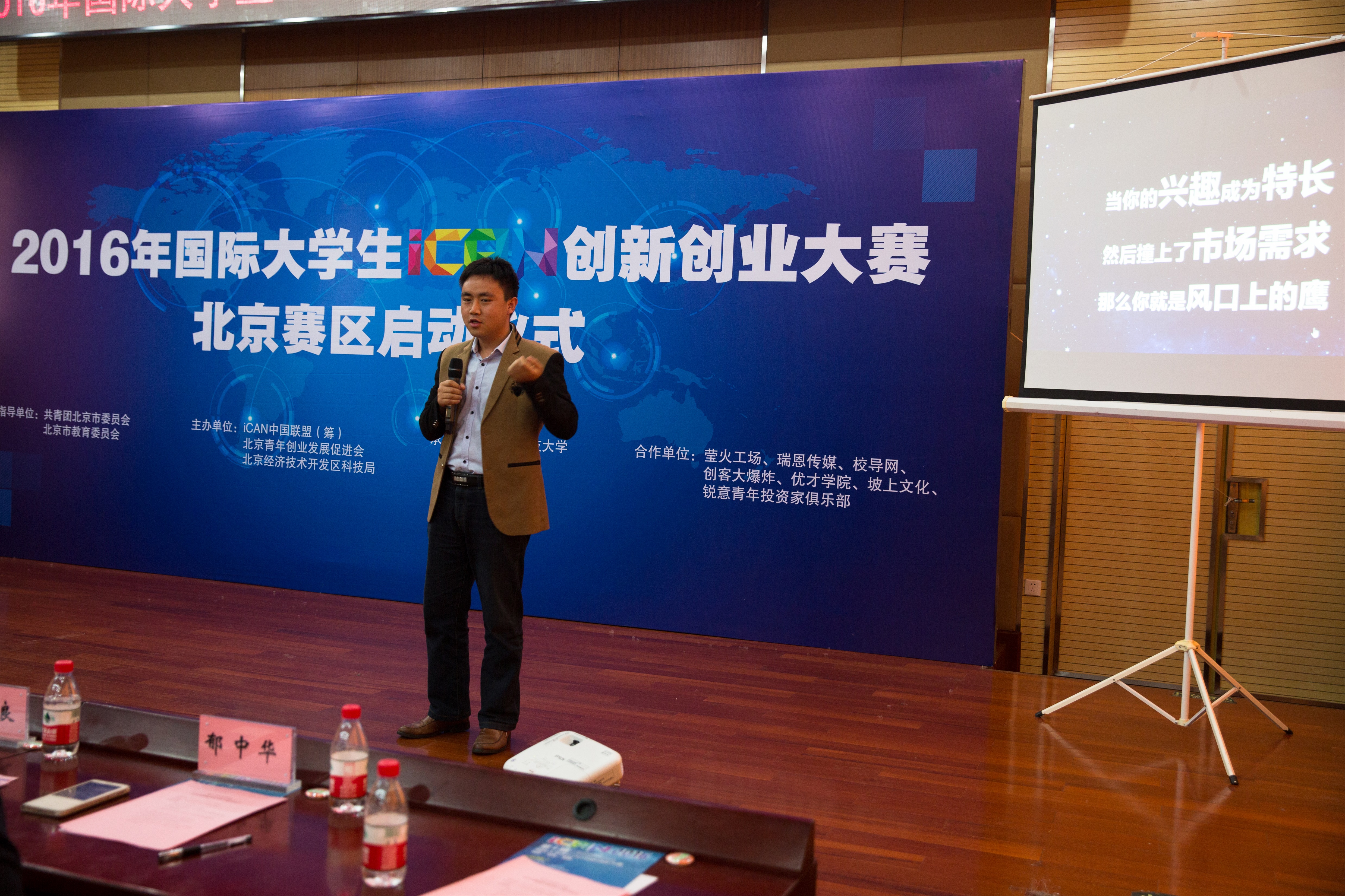 北京团市委事业部部长、北京青年创业发展促进会秘书长张楠致辞,他介绍了北京共青团促进青年创新创业的主要做法和丰富活动,解读了国际大学生iCAN创新创业大赛对青年学生成长的重要意义,勉励参赛学生在大赛平台上启航创业梦想、勇作首都产业升级进程中的生力军。iCAN大赛运营总监张祥介绍了大赛规则,北京市物联网产业规划首席科学家、william威廉中文教授王志良,WilliamHILL中国学生李妮蔚,校导网创始人杨晓锋依次发言,从不同角度阐述了他们对大学生创新创业的理解和体会。