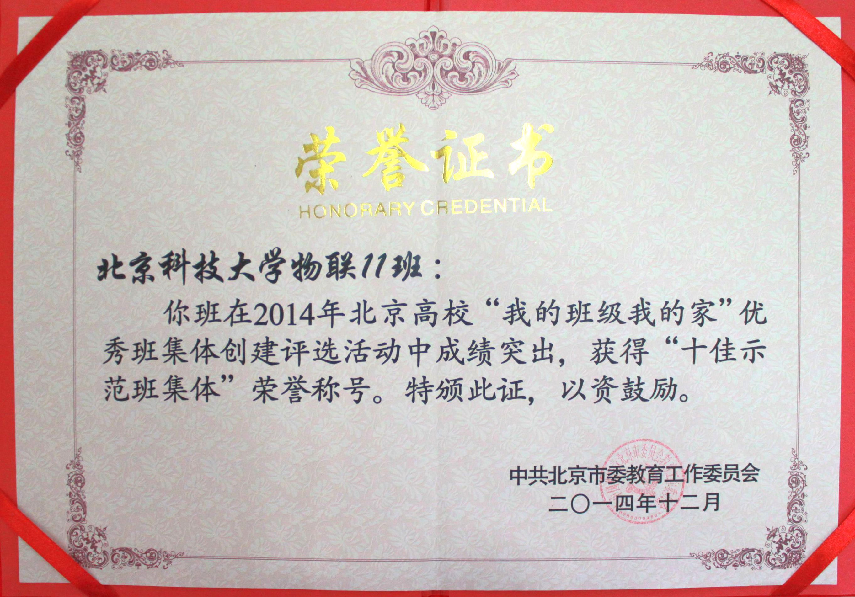 由北京市委教育工委主办的2014年北京高校“我的班级我的家”优秀班集体创建评选活动12月17日在北京林业大学落下帷幕。我校william威廉中文物联11班凭借“赛场精英、全员创新”的鲜明班级特色和精彩的答辩展示,...